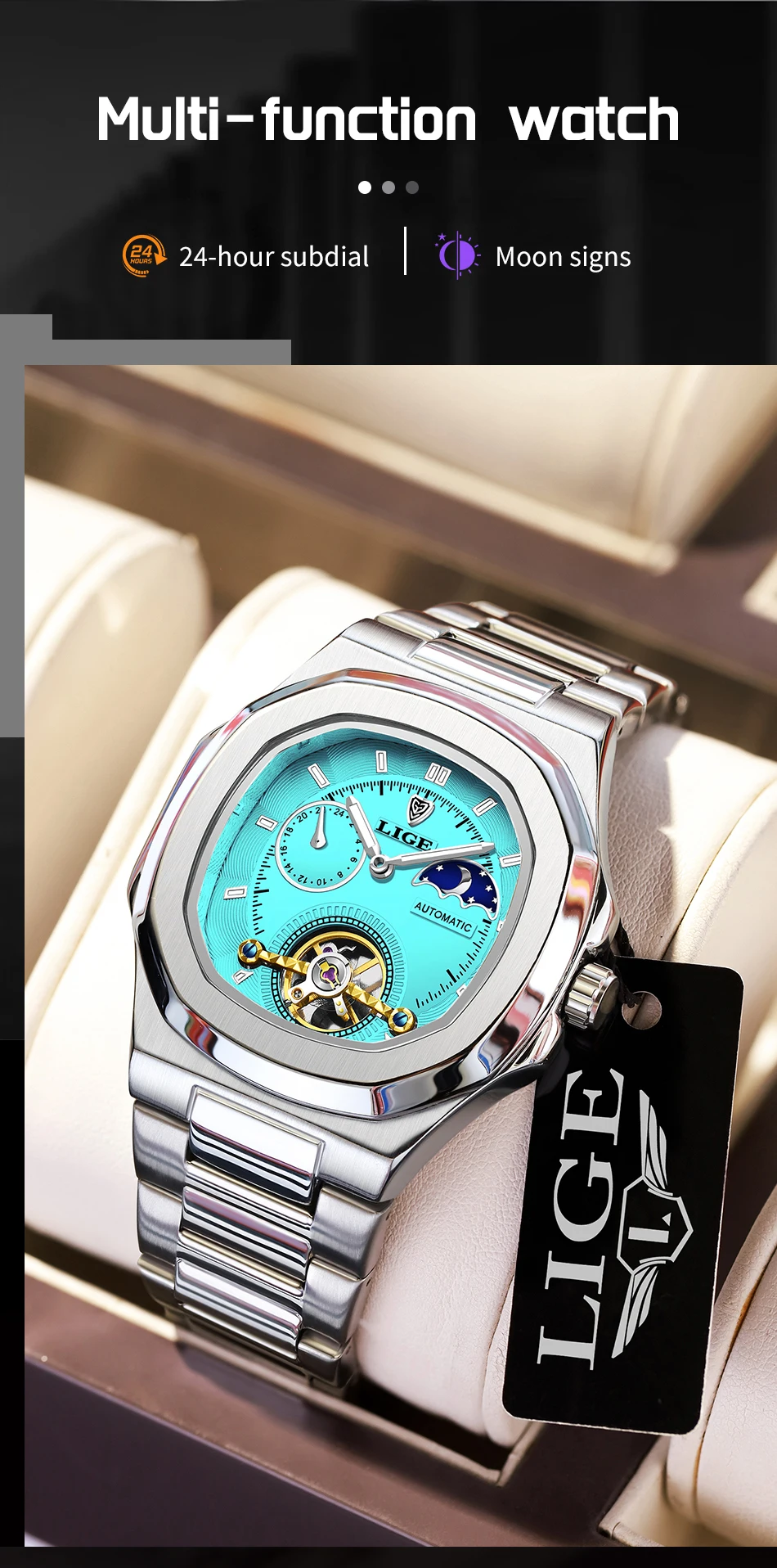 ??CHRONOGRAFO E IMPERMEÁVEL?O submostrador multifuncional pode ser usado como temporizadores (cronógrafos de segundos, minutos e horas).Os relógios cronógrafos à prova d'água da LIGE para homens são à prova d'água 30M/3ATM, podem suportar suor, chuva acidental ou respingos de água (doche, água quente, opere o relógio quando debaixo d'água não é recomendado).Depois de absorver energia luminosa suficiente para ter um certo efeito que brilha no escuro em ambientes escuros.É um relógio multifuncional de couro para homens.